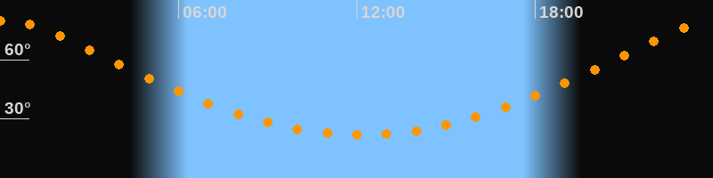 | Höchster Stand (Kulmination) | 00:08 Uhr (h = 79,6°) |