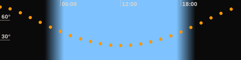| Höchster Stand (Kulmination) | 00:00 Uhr (h = 79,6°) |