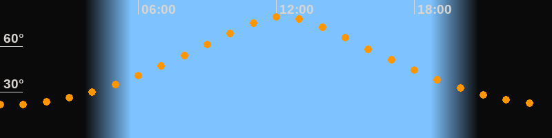 | Höchster Stand (Kulmination) | 12:17 Uhr (h = 79,6°) |