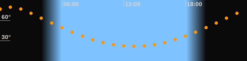| Höchster Stand (Kulmination) | 01:01 Uhr (h = 79,6°) |