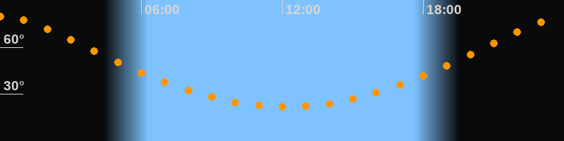 | Höchster Stand (Kulmination) | 00:07 Uhr (h = 79,6°) |