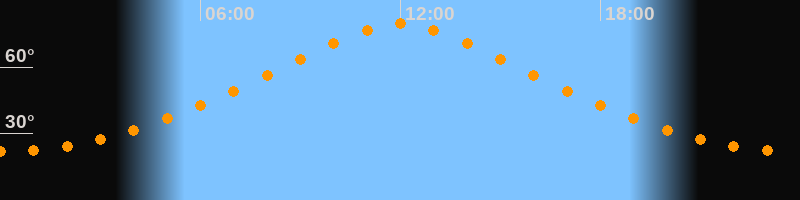 | Höchster Stand (Kulmination) | 12:00 Uhr (h = 79,6°) |