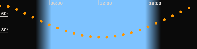 | Höchster Stand (Kulmination) | 00:16 Uhr (h = 79,6°) |