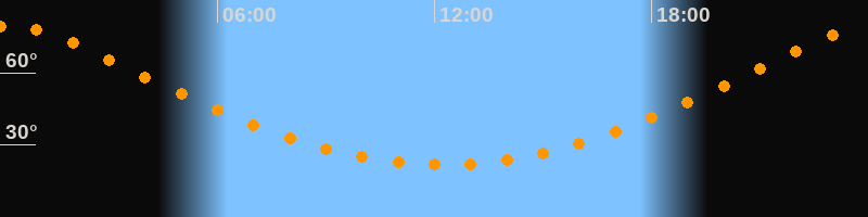 | Höchster Stand (Kulmination) | 00:13 Uhr (h = 79,6°) |