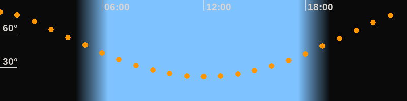| Höchster Stand (Kulmination) | 00:01 Uhr (h = 79,6°) |