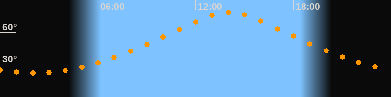 | Höchster Stand (Kulmination) | 14:02 Uhr (h = 78,9°) |