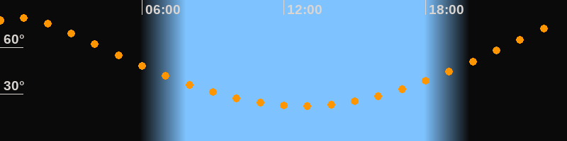 | Höchster Stand (Kulmination) | 00:45 Uhr (h = 78,9°) |