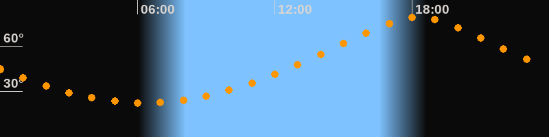 | Höchster Stand (Kulmination) | 18:15 Uhr (h = 78,9°) |