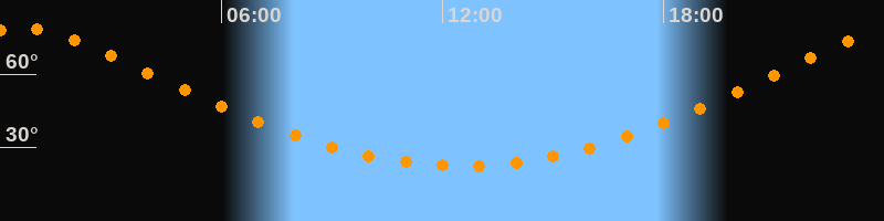 | Höchster Stand (Kulmination) | 00:31 Uhr (h = 78,9°) |