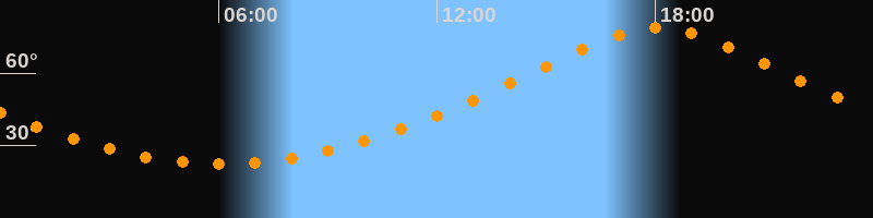 | Höchster Stand (Kulmination) | 18:04 Uhr (h = 78,9°) |