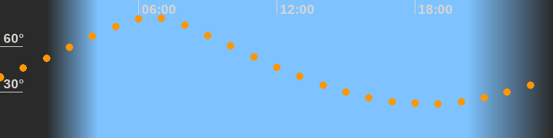 | Höchster Stand (Kulmination) | 06:33 Uhr (h = 78,9°) |