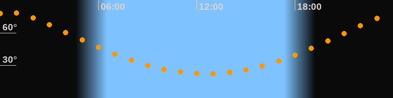 | Höchster Stand (Kulmination) | 00:31 Uhr (h = 78,9°) |