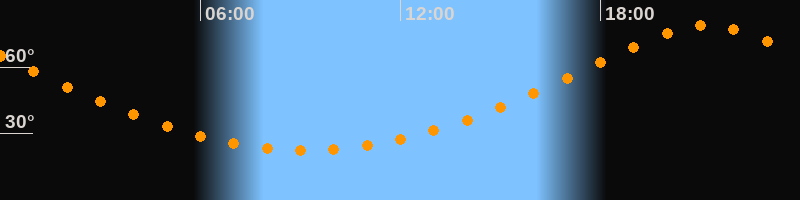 | Höchster Stand (Kulmination) | 21:11 Uhr (h = 78,9°) |