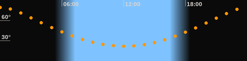 | Höchster Stand (Kulmination) | 00:00 Uhr (h = 79,4°) |