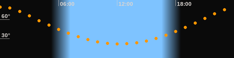 | Höchster Stand (Kulmination) | 00:14 Uhr (h = 79,4°) |
