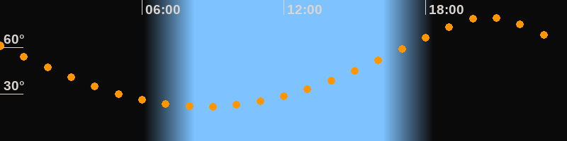 | Höchster Stand (Kulmination) | 20:37 Uhr (h = 79,4°) |