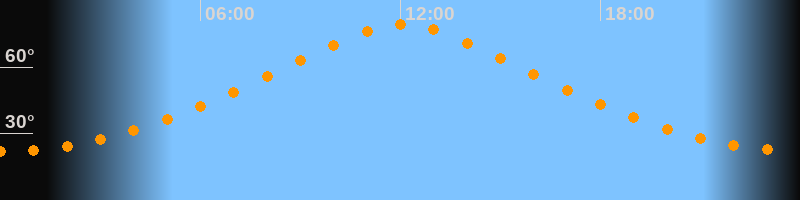 | Höchster Stand (Kulmination) | 12:03 Uhr (h = 79,4°) |