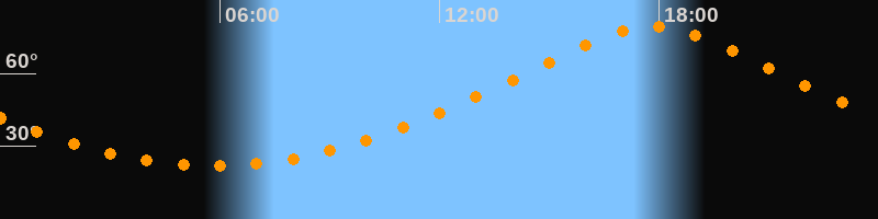 | Höchster Stand (Kulmination) | 17:49 Uhr (h = 79,4°) |