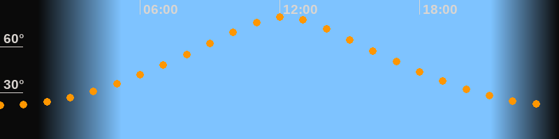 | Höchster Stand (Kulmination) | 12:09 Uhr (h = 79,4°) |