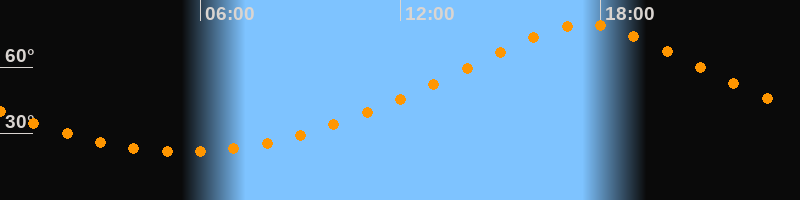 | Höchster Stand (Kulmination) | 17:31 Uhr (h = 79,4°) |