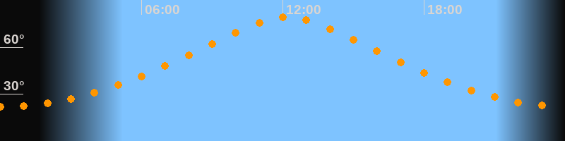 | Höchster Stand (Kulmination) | 12:10 Uhr (h = 79,4°) |
