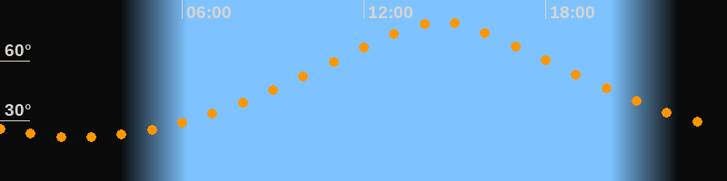| Höchster Stand (Kulmination) | 14:33 Uhr (h = 79,4°) |
