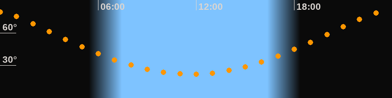 | Höchster Stand (Kulmination) | 23:39 Uhr (h = 79,4°) |