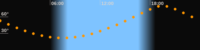 | Höchster Stand (Kulmination) | 19:31 Uhr (h = 79,4°) |