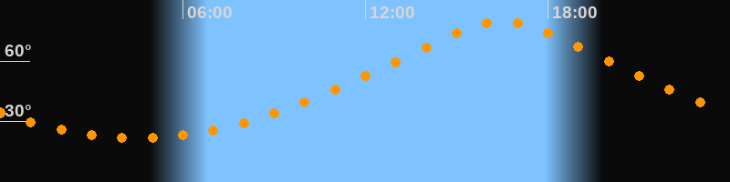 | Höchster Stand (Kulmination) | 16:30 Uhr (h = 79,4°) |