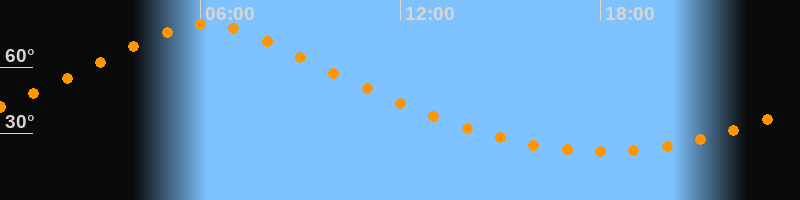 | Höchster Stand (Kulmination) | 06:09 Uhr (h = 79,4°) |
