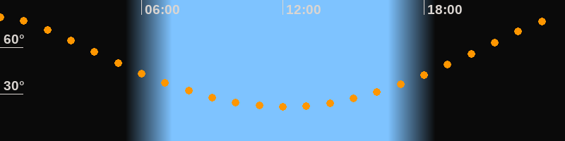 | Höchster Stand (Kulmination) | 00:02 Uhr (h = 79,4°) |