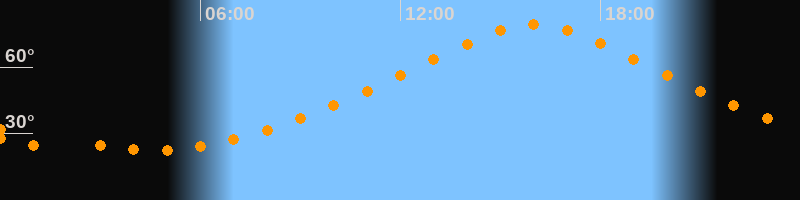 | Höchster Stand (Kulmination) | 16:00 Uhr (h = 79,4°) |