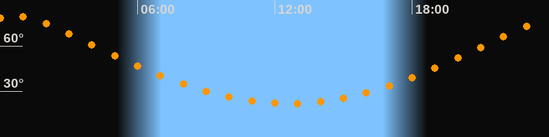 | Höchster Stand (Kulmination) | 00:35 Uhr (h = 79,4°) |
