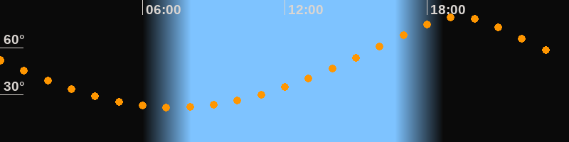 | Höchster Stand (Kulmination) | 19:20 Uhr (h = 79,4°) |
