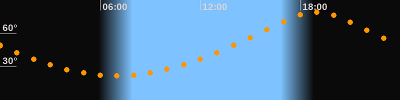 | Höchster Stand (Kulmination) | 18:57 Uhr (h = 79,4°) |