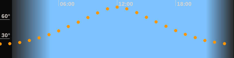 | Höchster Stand (Kulmination) | 12:01 Uhr (h = 79,4°) |