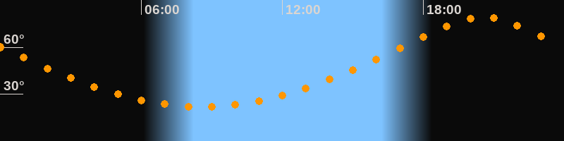 | Höchster Stand (Kulmination) | 20:32 Uhr (h = 79,4°) |