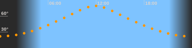 | Höchster Stand (Kulmination) | 11:54 Uhr (h = 79,4°) |