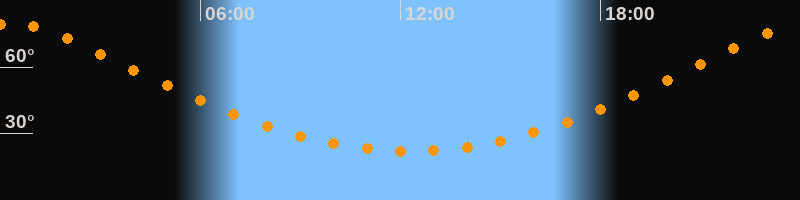 | Höchster Stand (Kulmination) | 00:17 Uhr (h = 79,4°) |