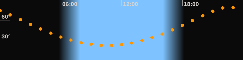 Höchster Stand (Kulmination)22:33 Uhr (h = 79,4°)