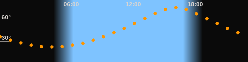 | Höchster Stand (Kulmination) | 16:59 Uhr (h = 79,4°) |