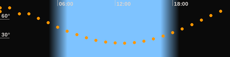 Höchster Stand (Kulmination)00:40 Uhr (h = 79,4°)
