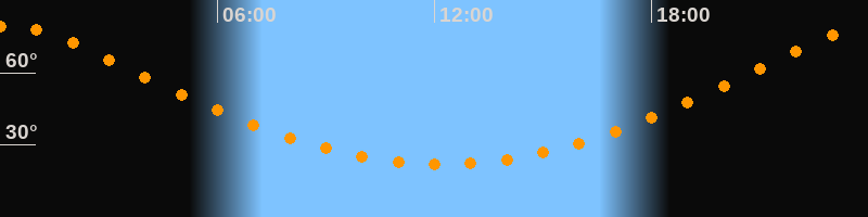 | Höchster Stand (Kulmination) | 00:12 Uhr (h = 79,4°) |