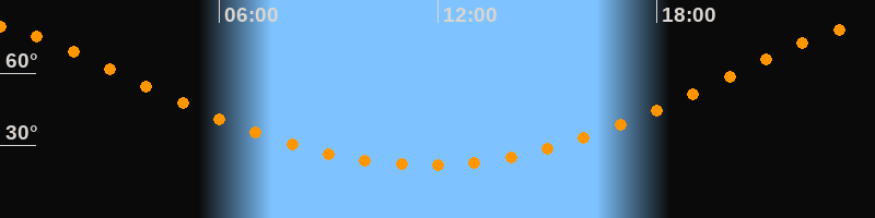 | Höchster Stand (Kulmination) | 23:41 Uhr (h = 79,4°) |