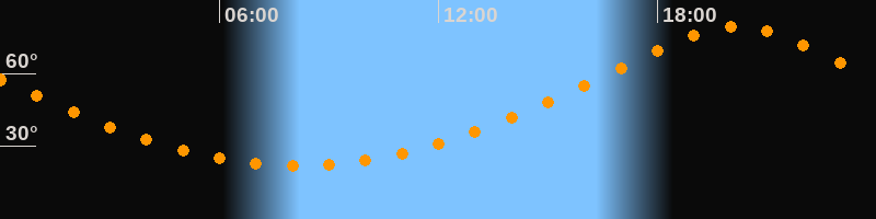 | Höchster Stand (Kulmination) | 20:08 Uhr (h = 79,4°) |