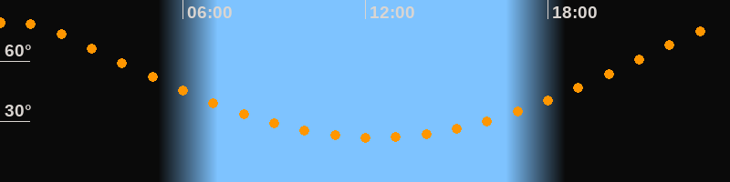 | Höchster Stand (Kulmination) | 00:21 Uhr (h = 79,4°) |