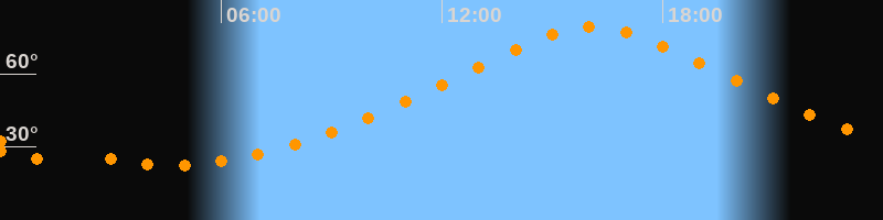 | Höchster Stand (Kulmination) | 16:07 Uhr (h = 79,4°) |