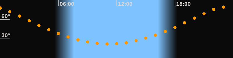 | Höchster Stand (Kulmination) | 23:11 Uhr (h = 79,4°) |