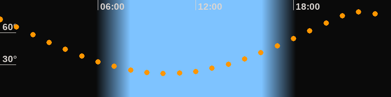Höchster Stand (Kulmination)22:12 Uhr (h = 79,4°)