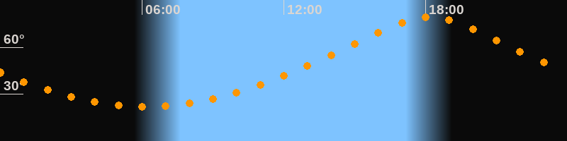 | Höchster Stand (Kulmination) | 18:08 Uhr (h = 79,4°) |